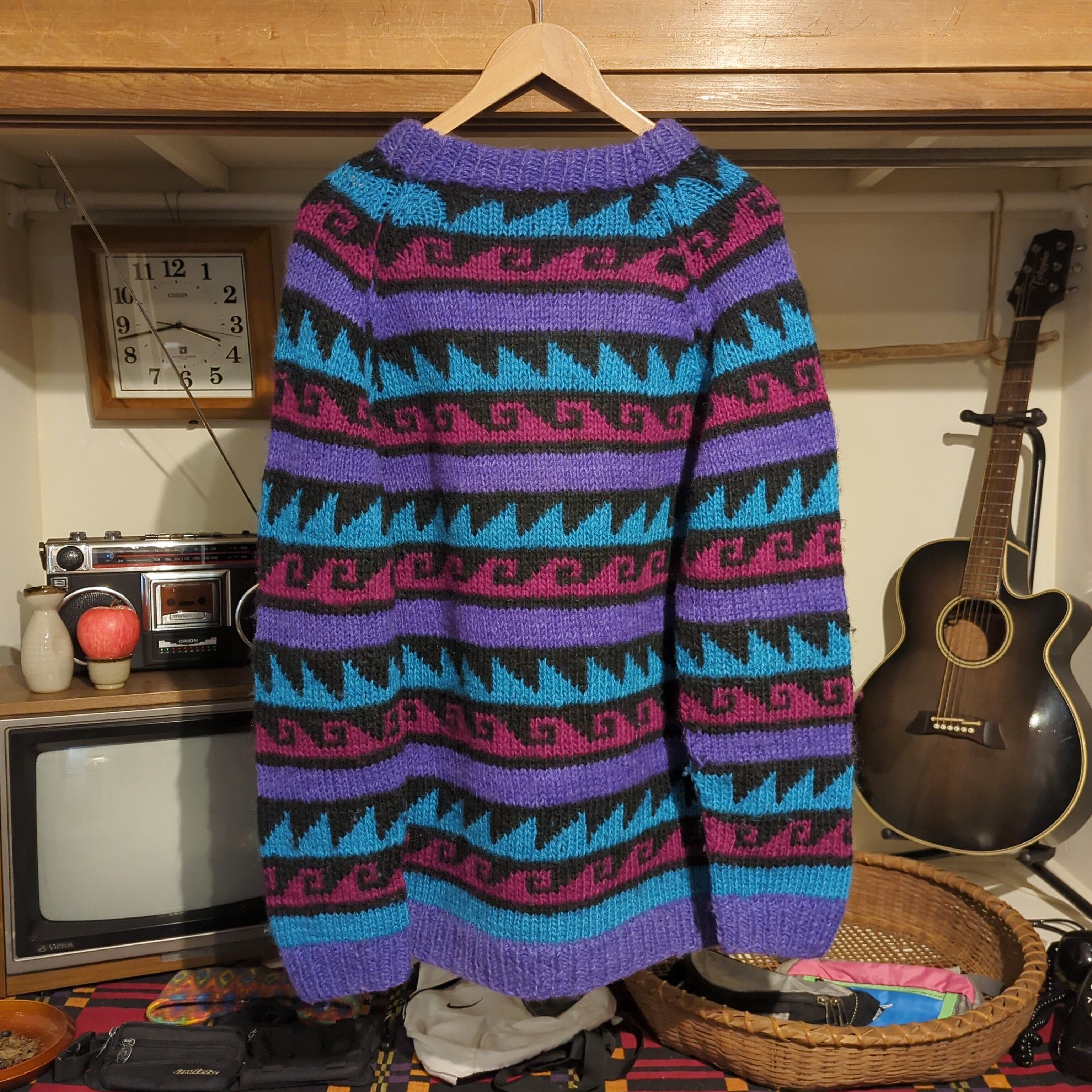 ビビットな配色ですが全体的には黒が強いので、取り入れやすい柄セーターです。